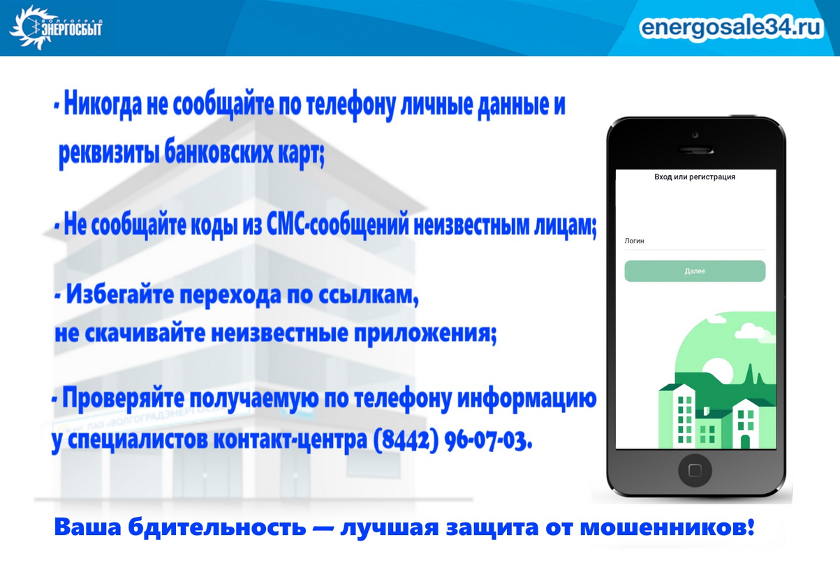 Специалисты ПАО «Волгоградэнергосбыт» напоминают волгоградцам об информационной безопасности